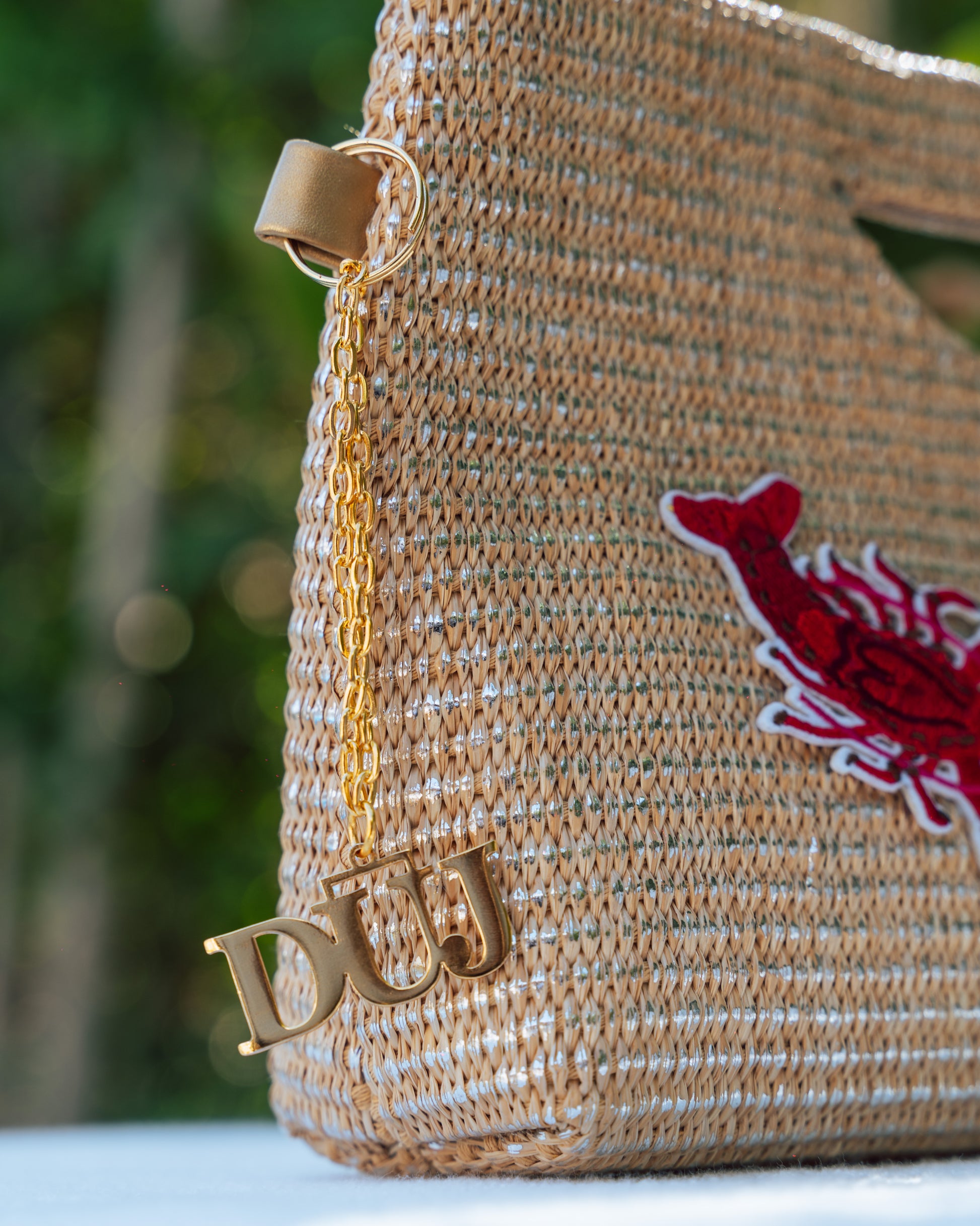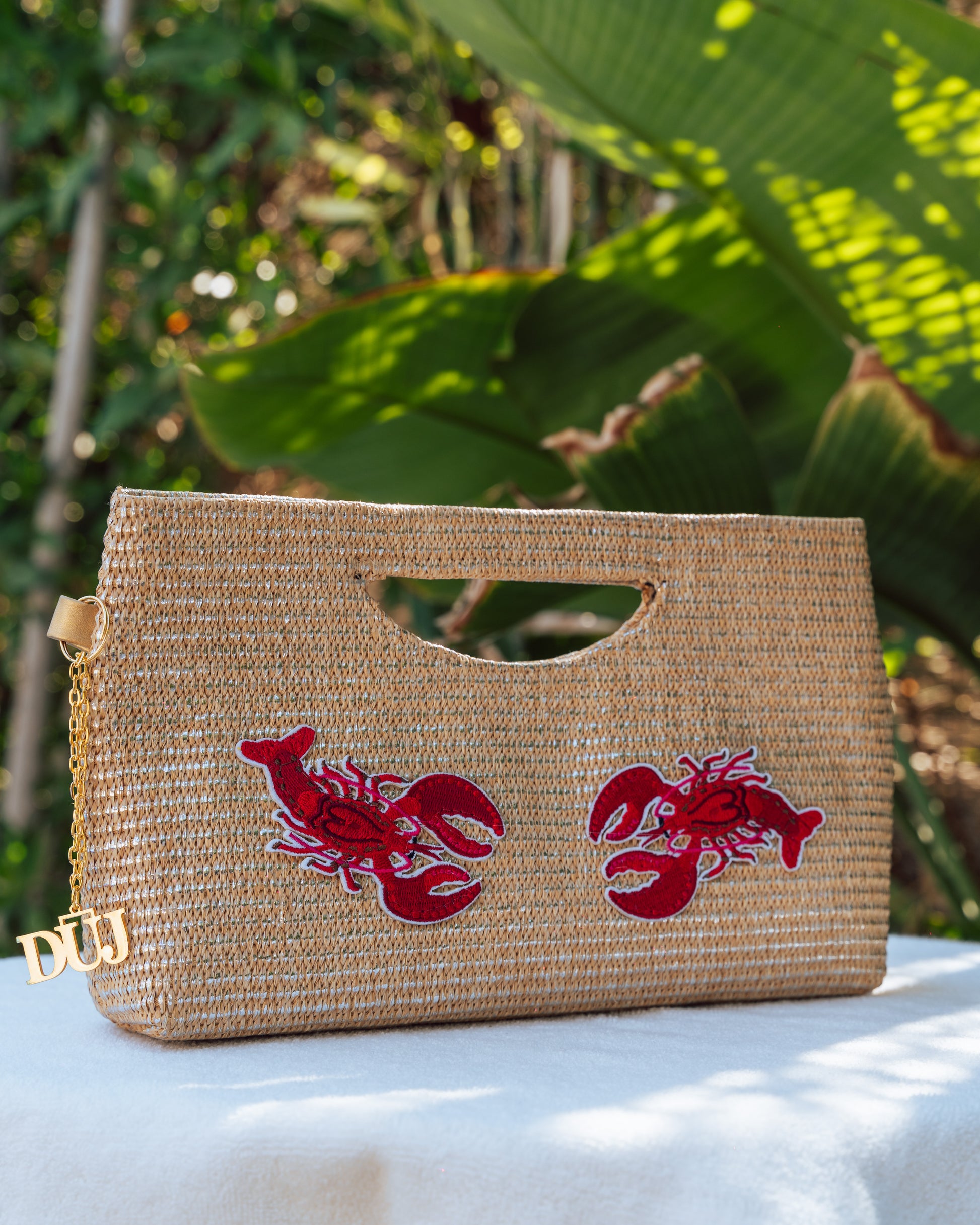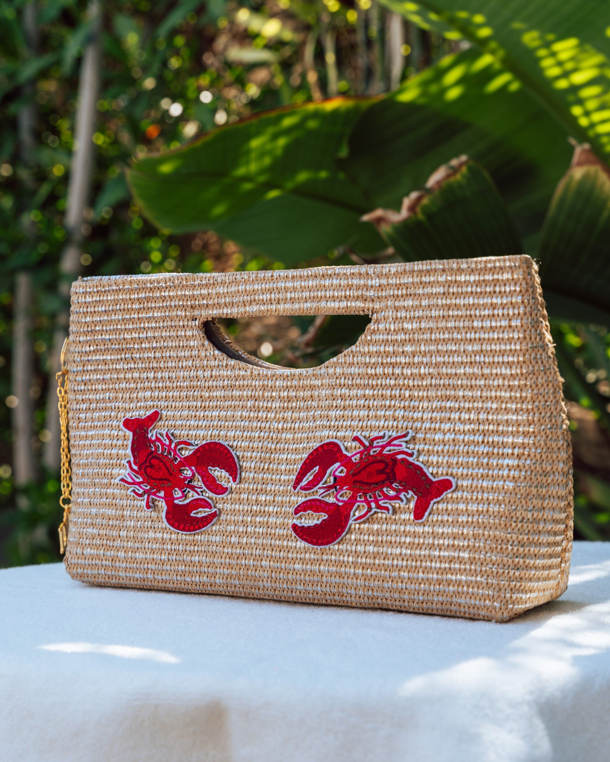 symbolism of the lobster. This wicker clutch is bold and sculptural — made for those who command attention.