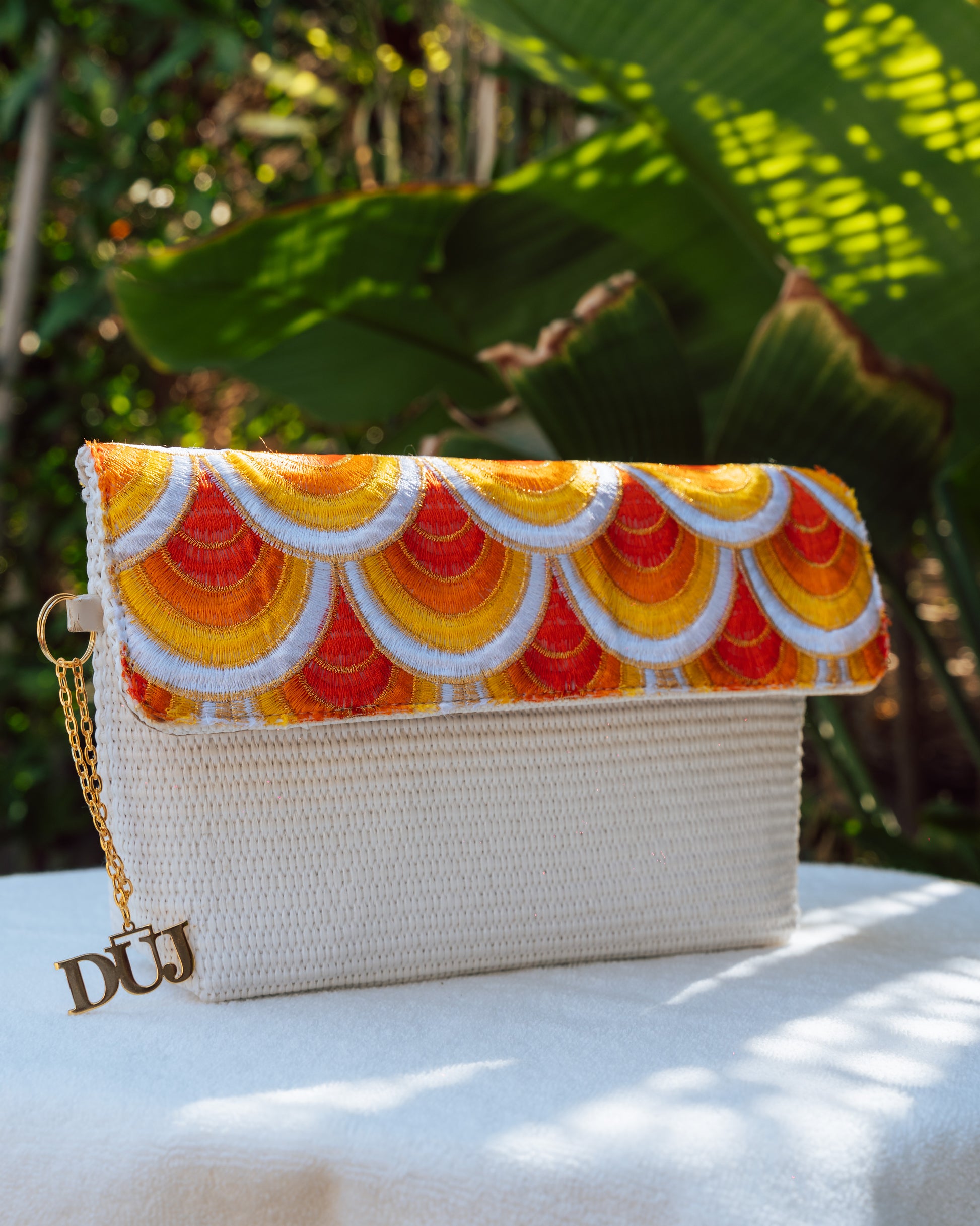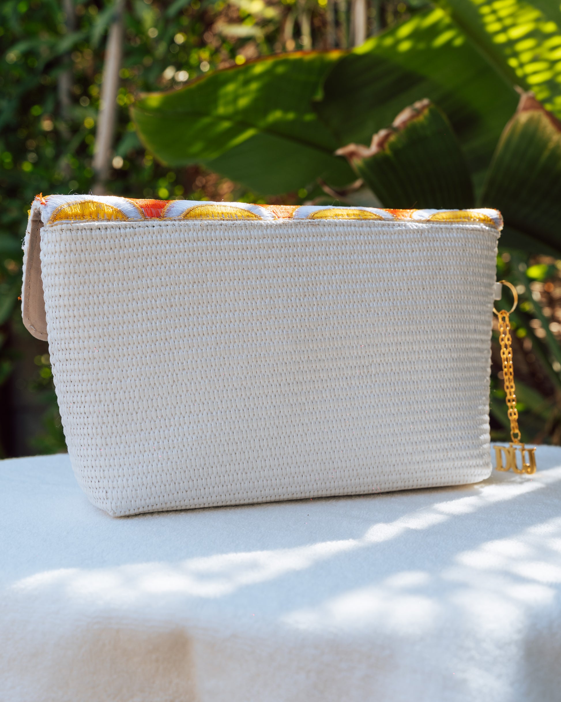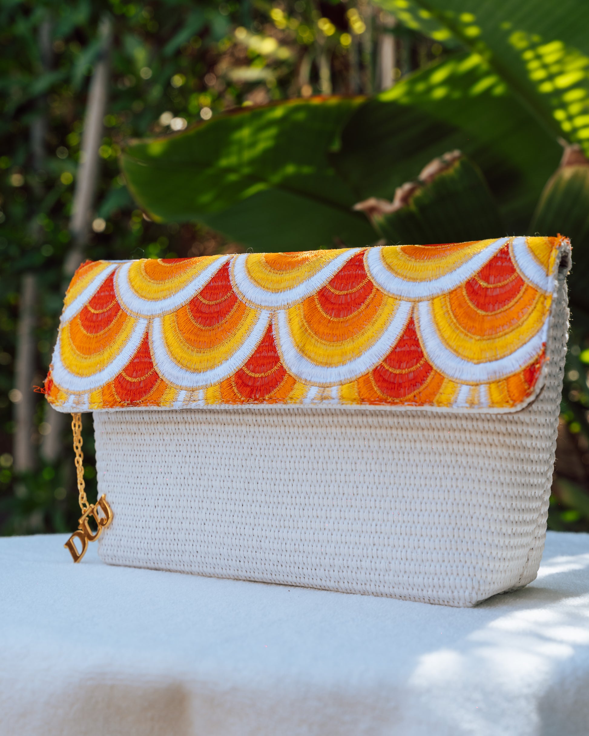 White wicker meets warm cotton waves in this summer-scorched silhouette. Sunset